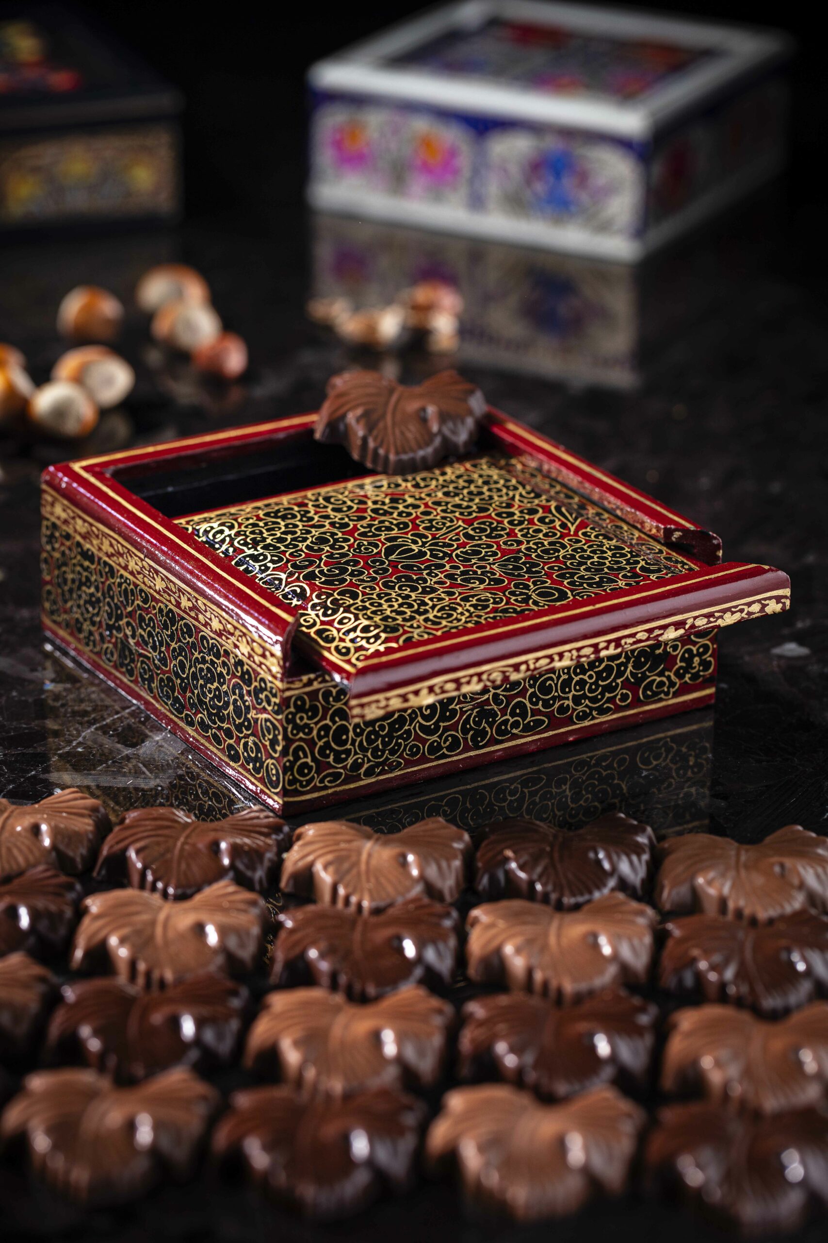 Pralinés Amande – Noisette Chocolats Noir&Lait ˵ Feuilles de vigne˶