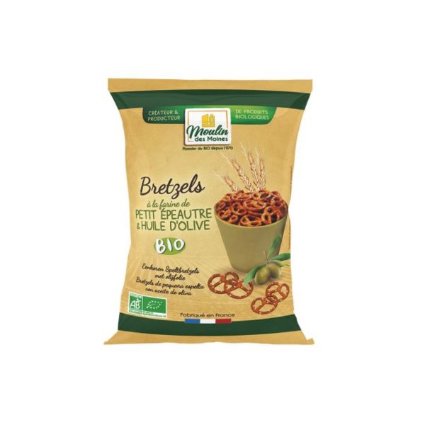 Les bretzels de petit épeautre bio sont des biscuits apéritifs légers et croustillants, au goût rustique de petit épeautre.