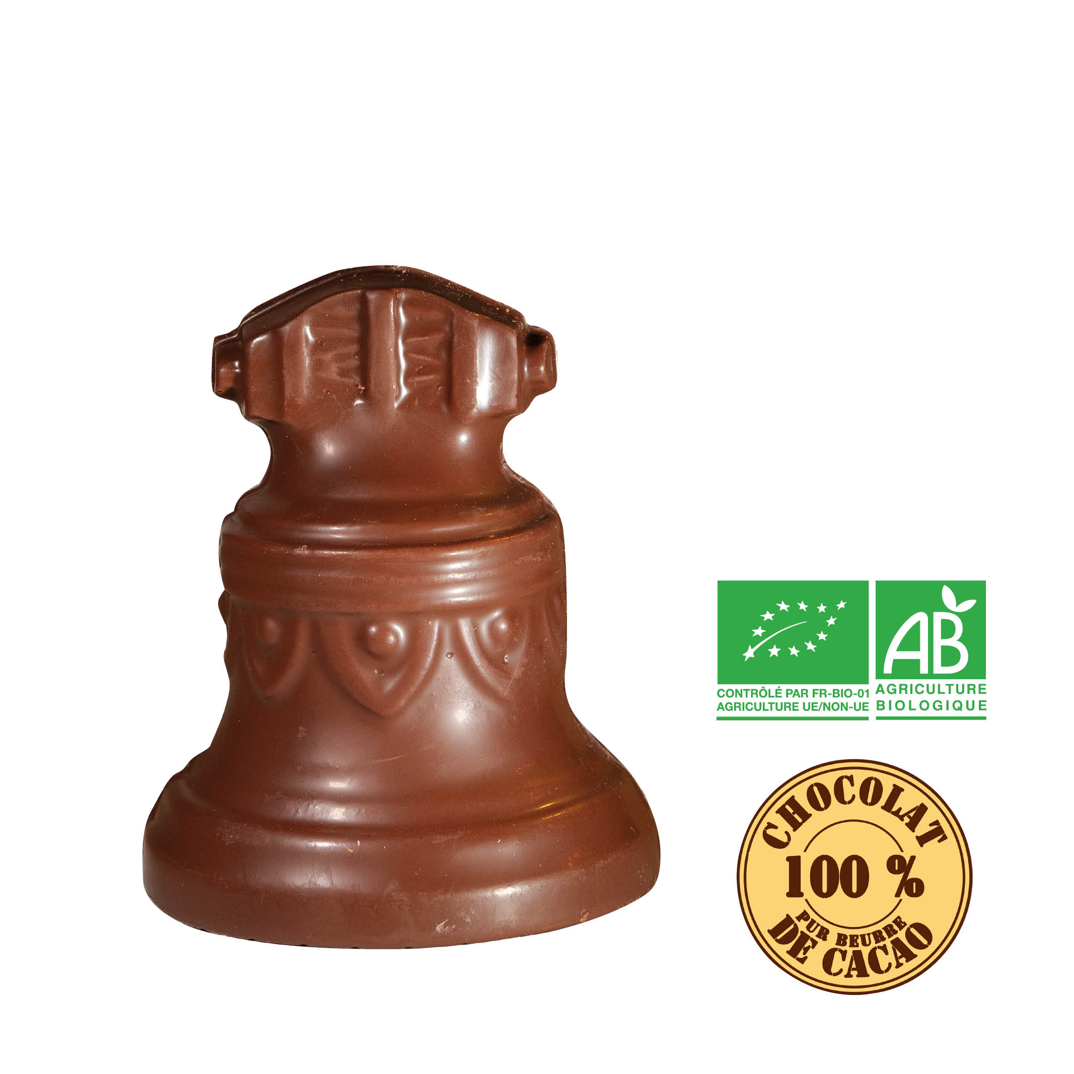 Moulage chocolat au lait 39% Bio – Clochette – Hauteur 12cm.
