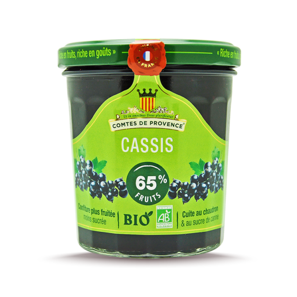 Cassis* (64%), Sucre de canne*, Gélifiant: pectine de fruits. (* Issus de l’agriculture Biologique).