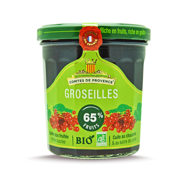 Jus de Groseilles* (60%), sucre de canne,*, gélifiant : pectine de fruits
