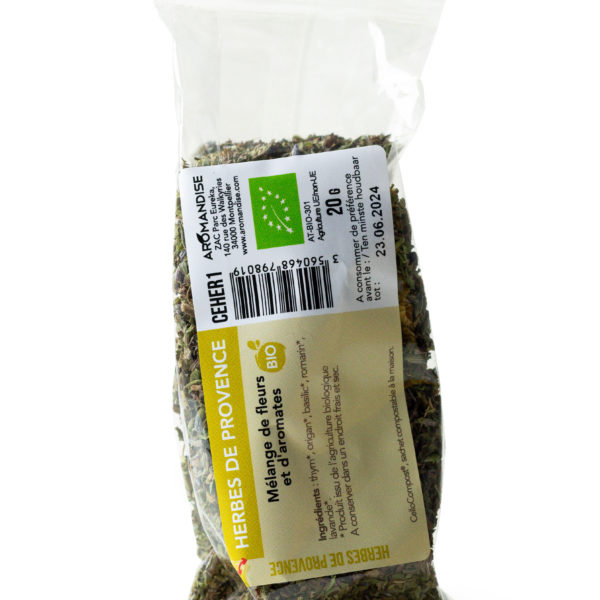 Un séjour en Provence se profile pour vos papilles avec ce mélange d’herbes aromatiques ! Déclicieusement parfumé, il accomodera vos grillades comme vos plats mijotés.