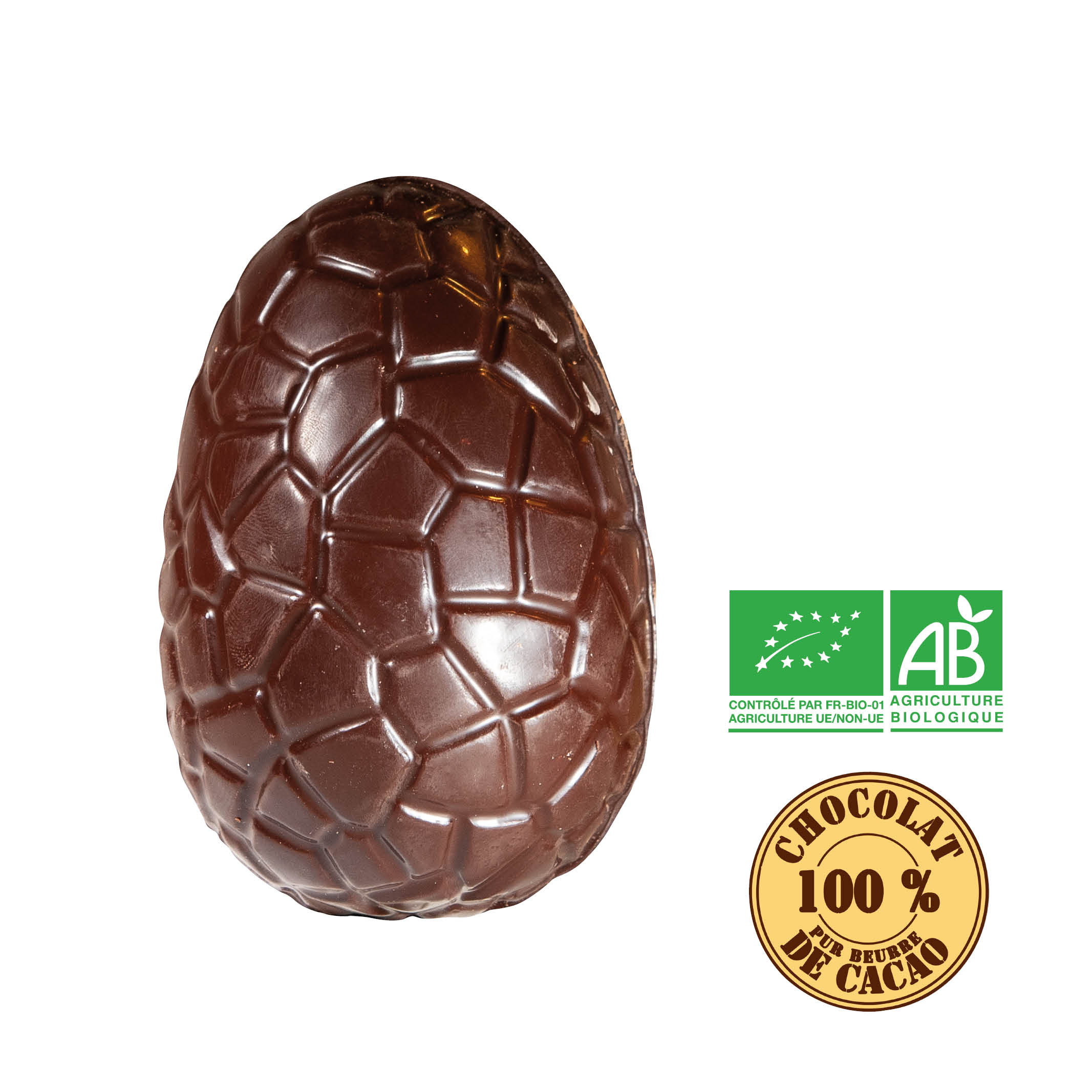 Moulage chocolat noir 74% Bio – Oeuf – Hauteur 12cm.